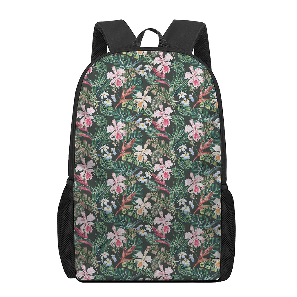 Red And Black Frangipani Pattern Print 17 Inch Backpack