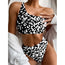 Black And White Pixel Pattern Print One Shoulder Bikini Set