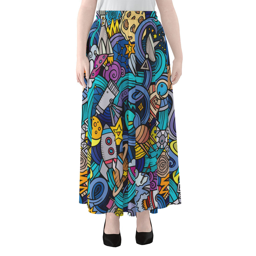 Abstract Cartoon Galaxy Space Print Chiffon Maxi Skirt
