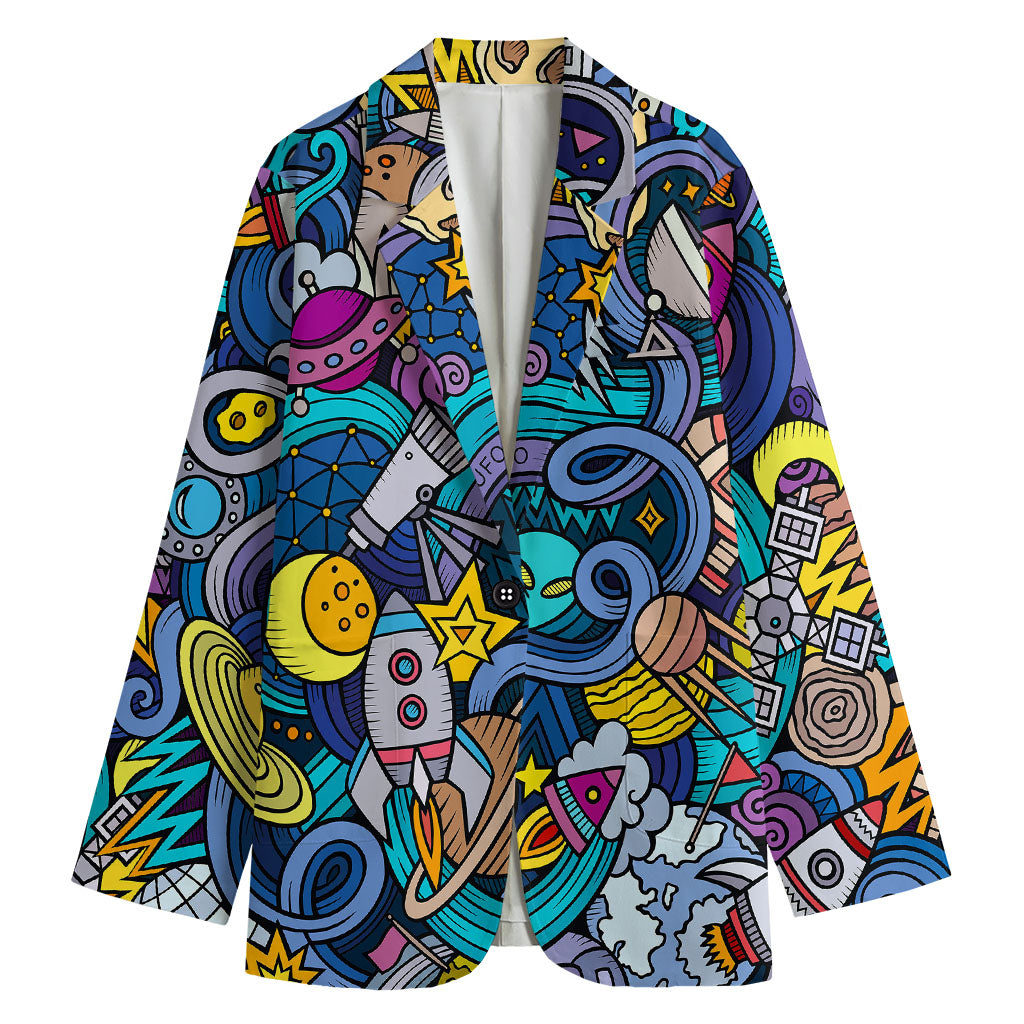 Abstract Cartoon Galaxy Space Print Women's Blazer