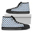 Are you looking for unique sneakers? Check our White And Blue Polka Dot Pattern Print Black High Top Sneakers on GearFrost. Our sneakers are handcrafted to the highest quality standards and made-to-order for you!
