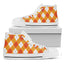Are you looking for unique sneakers? Check our White And Orange Argyle Pattern Print White High Top Sneakers on GearFrost. Our sneakers are handcrafted to the highest quality standards and made-to-order for you!