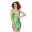 Blue Aloha Pineapple Pattern Print Sleeveless Bodycon Dress