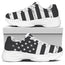 Are you looking for unique shoes? Check our Grey And White American Flag Print White Chunky Shoes on GearFrost. Our shoes are handcrafted to the highest quality standards and made-to-order for you!