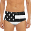 Stay confident at the pool or beach with the Monochrome Grunge American Flag Print Men's Triangle Swim Briefs. Designed with a blend of 88% polyester and 12% spandex, these swim briefs provide comfort, stretch, and support for everyday swimwear use. The smooth fabric and regular fit make them practical for both swimming and lounging.