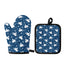 Blue And White Angel Pattern Print Oven Mitt And Pot Holder Set
