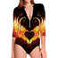 Fire Angel Wings Print Long Sleeve Swimsuit