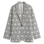 Functionality meets fashion with two spacious side pockets, ideal for carrying small essentials like your phone, keys, or wallet. The blazer is finished with stitching in black or white, automatically matched to suit the design for a seamless appearance. This attention to detail enhances its overall elegance, making it a standout piece for any occasion.