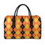 Travel smarter with the Black And Orange Argyle Pattern Print Leather Duffel Bag—a practical and stylish option for short trips, gym days, or weekend getaways. Crafted from premium PU synthetic leather, this bag offers a polished look with just the right amount of everyday durability.