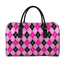 Black And Pink Argyle Pattern Print Leather Duffle Bag