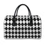 Black And White Argyle Pattern Print Leather Duffle Bag