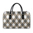 Brown And White Argyle Pattern Print Leather Duffle Bag