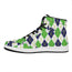 Are you looking for unique sneakers? Check our Navy Green And White Argyle Print High Top Leather Sneakers on GearFrost. Our sneakers are handcrafted to the highest quality standards and made-to-order for you!