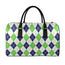 Travel smarter with the Navy Green And White Argyle Print Leather Duffel Bag—a practical and stylish option for short trips, gym days, or weekend getaways. Crafted from premium PU synthetic leather, this bag offers a polished look with just the right amount of everyday durability.