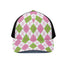 Pink Green And White Argyle Print Black Mesh Trucker Cap