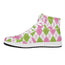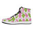 Are you looking for unique sneakers? Check our Pink Green And White Argyle Print High Top Leather Sneakers on GearFrost. Our sneakers are handcrafted to the highest quality standards and made-to-order for you!