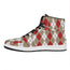 Are you looking for unique sneakers? Check our Red Beige And White Argyle Pattern Print High Top Leather Sneakers on GearFrost. Our sneakers are handcrafted to the highest quality standards and made-to-order for you!