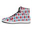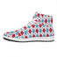 Are you looking for unique sneakers? Check our White Red And Blue Argyle Pattern Print High Top Leather Sneakers on GearFrost. Our sneakers are handcrafted to the highest quality standards and made-to-order for you!
