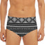 Stay confident at the pool or beach with the Black And White Aztec Ethnic Print Men's Triangle Swim Briefs. Designed with a blend of 88% polyester and 12% spandex, these swim briefs provide comfort, stretch, and support for everyday swimwear use. The smooth fabric and regular fit make them practical for both swimming and lounging.