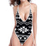Black And White Aztec Pattern Print High Cut One Piece Swimsuit