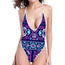 Blue And Pink Aztec Pattern Print High Cut One Piece Swimsuit