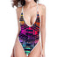 Ethnic Aztec Grunge Trippy Print High Cut One Piece Swimsuit