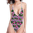 Tropical Hibiscus Flowers Aztec Print One Piece High Cut Swimsuit
