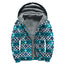 Teal And Brown Aztec Pattern Print Sherpa Lined Zip Up Hoodie