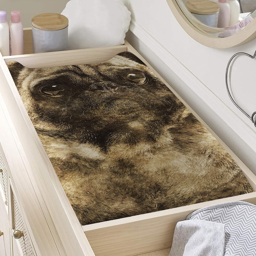 Vintage Pug Portrait Print Changing Pad Cover