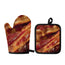 The Crispy Bacon Print Oven Mitt And Pot Holder Set is a reliable kitchen essential designed to keep your hands and surfaces safe during everyday cooking. Made from durable polyester with an insulation cotton lining, this set offers comfort and practical heat resistance for common kitchen tasks.