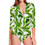 Tropical Banana Leaves Pattern Print Long Sleeve Swimsuit