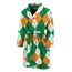 Are you looking for unique bathrobes? Check our Green Orange And White Argyle Print Men's Bathrobe on GearFrost. Our bathrobes are handcrafted to the highest quality standards and made-to-order for you!