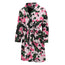 Pink Flowers Skull Pattern Print Women's Bathrobe