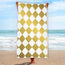 Are you looking for unique beach towels? Check our White And Gold Harlequin Pattern Print Beach Towel on GearFrost. Our towels are handcrafted to the highest quality standards and made-to-order for you!