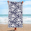 White Blue Skull Floral Pattern Print Beach Towel