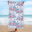 White Blue Hibiscus Floral Pattern Print Beach Towel