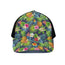 Turquoise Hawaii Tropical Pattern Print Black Mesh Trucker Hat