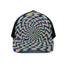 Top off your look with the stylish and functional Psychedelic Illusory Motion Print Black Mesh Trucker Hat. This trucker hat combines timeless design with practical features, making it a must-have accessory for outdoor adventures, casual outings, and athletic activities. Whether you're looking for sun protection or a trendy way to complete your outfit, this hat has you covered.