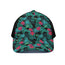 Turquoise Hawaii Tropical Pattern Print Black Mesh Trucker Hat