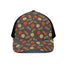 Yarn And Needle Pattern Print Black Mesh Trucker Cap