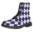 Step out with confidence in the Navy Blue And White Argyle Pattern Print Lace-Up Boots. Built with a 100% vegan PU leather upper and a durable rubber outsole, these lace-up boots balance everyday comfort with reliable traction—great for daily wear without overpromising performance.