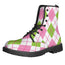 Step out with confidence in the Pink Green And White Argyle Print Lace-Up Boots. Built with a 100% vegan PU leather upper and a durable rubber outsole, these lace-up boots balance everyday comfort with reliable traction—great for daily wear without overpromising performance.