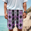 Mardi Gras Argyle Pattern Print Men's Shorts