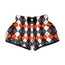 Are you looking for unique boxing shorts? Check our Grey Black Orange And White Argyle Print Muay Thai Boxing Shorts on GearFrost. Our boxing shorts are handcrafted to the highest quality standards and made-to-order for you!