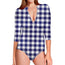 Navy And White Buffalo Check Print Long Sleeve Swimsuit