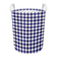 Navy And White Buffalo Check Print Round Laundry Basket