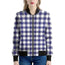 Make a bold statement with the sleek and stylish Navy And White Buffalo Check Print Women's Bomber Jacket. This women's bomber jacket combines a classic silhouette with modern design, offering the perfect mix of fashion and functionality. Whether you're layering it for a chilly day or adding a finishing touch to your outfit, this jacket is designed to keep you comfortable while elevating your style.
