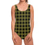 Olive Green Buffalo Check Pattern Print One Piece Swimsuit