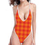Orange Buffalo Check Pattern Print High Cut One Piece Swimsuit