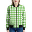 Make a bold statement with the sleek and stylish UFO Green And White Buffalo Check Print Women's Bomber Jacket. This women's bomber jacket combines a classic silhouette with modern design, offering the perfect mix of fashion and functionality. Whether you're layering it for a chilly day or adding a finishing touch to your outfit, this jacket is designed to keep you comfortable while elevating your style.